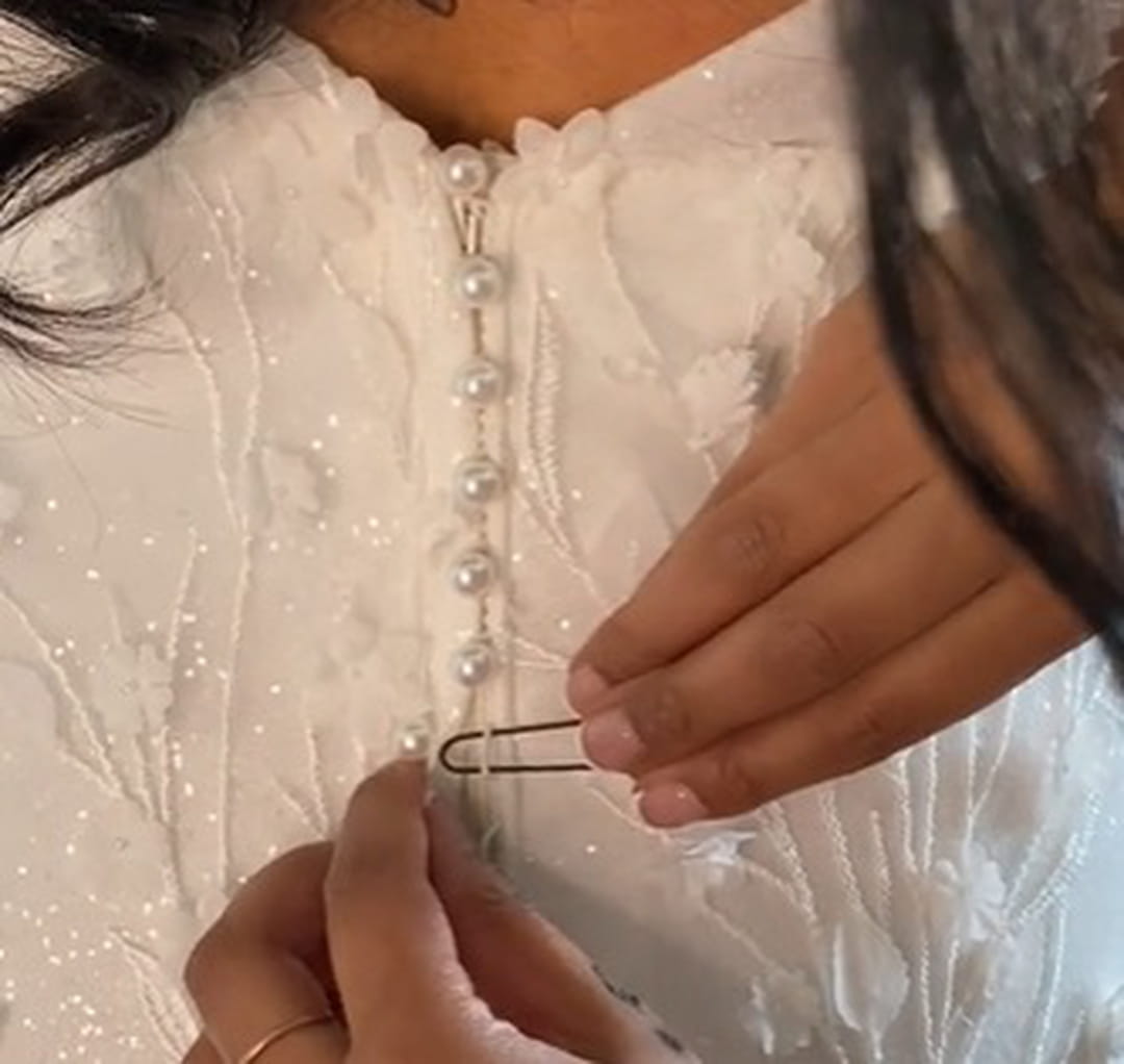 Mais lorsque le modèle comporte des boutons en guise de fermeture, les jeunes mariées ont besoin de l'aide de leur meilleure amie, de leur maman ou de la demoiselle d'honneur pour enfiler leur robe et boutonner le tout. Sur certains modèles, ces boutons sont cousus sur toute la longueur, dans le dos, ce qui apporte beaucoup de charme à la robe immaculée, mais qui rend la tâche plus difficile. Et cela prend aussi beaucoup de temps ! Alors, si vous vous mariez prochainement ou que vous projetez d'aider une future mariée à s'habiller, cette petite astuce pourrait vous être bien utile !