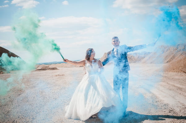 Dans les faits, cette tendance se matérialise souvent par une séance photo organisée quelques jours ou semaines après le mariage (le fameux "Day after"). L'objectif est de prendre le contre-pied total des photos de couple sages et posées du jour J. Les jeunes mariés se donnent rendez-vous dans des lieux insolites et n'hésitent plus à malmener leurs tenues de lumière. On se jette dans les vagues de l'océan, on s'allonge dans la boue d'une forêt, on s'organise une bataille de poudre colorée façon fête de Holi, ou on pose dans une usine désaffectée. Le contraste entre le glamour de la robe blanche et l'environnement brut, voire salissant, donne un résultat très "édito de mode". C'est une façon libératrice et un brin rebelle de faire le deuil de son mariage et de dire adieu à sa robe avec panache.