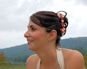 "Après plusieurs tentatives ratées chez des coiffeurs professionnels, j'ai demandé à ma collègue de travail si elle ne voulait pas y jeter un œil... Après deux essais, le résultat a été concluant. Je n'avais pas d'idée particulière, mais ayant les cheveux assez courts à l'époque, il a fallu ruser pour faire un effet chignon banane."