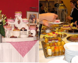 "Pour le repas, nous avons opté pour un buffet d'entrées froides avec par exemple un pannequet de saumon fumé, un gâteau de sAint-Jacques coraillée ou encore des verrines variées. Le plat de résistance était servi à table, c'était un suprême de pintade aux épices douces et abricots confits