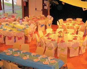 - Des tables rondes : nous y avons inscrit au centre le nom des personnes, qui se plaçaient où ils souhaitaient. J'ai procédé par petits groupes : les oncles et tantes de mon mari, les miens, les amis, les ados, les enfants... Puis j'ai loué des tables de 6 à 12 places en fonction de chaque groupe.