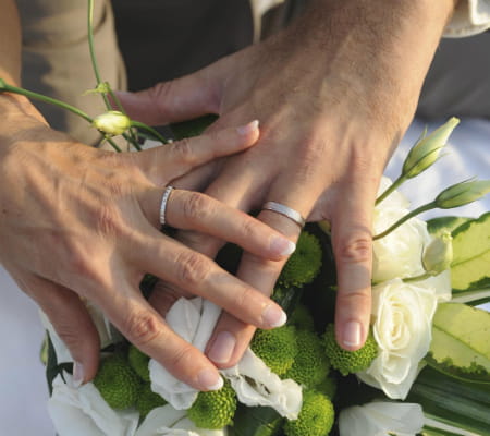 Tout sauf de l'or jaune pour Anne et Vincent ! Le couple a opté pour des alliances simples mais très élégantes pour lier son amour.