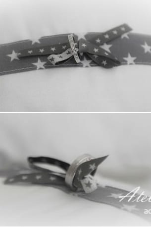 "J'ai choisi la mienne en fonction de ma bague de fiançailles. Une alliance or blanc demi tour serti rail avec diamants baguettes et brillants chez mon bijoutier de famille.