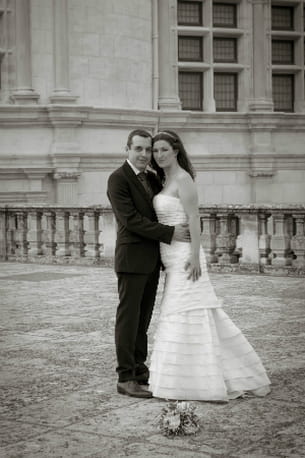 "Nous avons choisi Céline Pascal, une photographe basée en Provence. Elle a apporté son œil de pro dans des photos "atypiques" : l'entrée dans l'église vue du balcon, la sortie de l'église vue depuis le chœur... Le jour J elle a pris des photos des invités, de l'assemblée, des détails... Nous avions aussi pris un vidéaste qui a réalisé plusieurs clips des temps forts de la journée que nous regardons très souvent (car format très court !)"