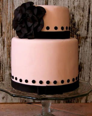 Le gâteau se pare d'une couleur rose tendre, encerclé par un ruban de pâte à sucre noire orné une splendide fleur. A l'intérieur, la génoise côtoie la crème au beurre pour régaler les convives. Chapeau bas pour cette réalisation !