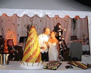 "Tout le monde fut émerveillé devant une telle abondance de desserts et sucreries en tout genre. Les flashs crépitaient de toute part... Alors que chacun se servait copieusement, nous avons ouvert le bal sur "Là où je t'emmenerais" de Florent Pagny. Nos invités nous ont ensuite rejoints sur cette magnifique piste en plein air, face au lac et sous les étoiles, jusqu'à l'aube."