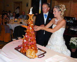 "A minuit, au moment de découper la pièce montée, le maître d'hôtel nous a carrément proposé de la sabrer ! Nous avons donc couper au sabre la pièce montée. Je n'étais pas rassurée, mais là encore, c'était très original."