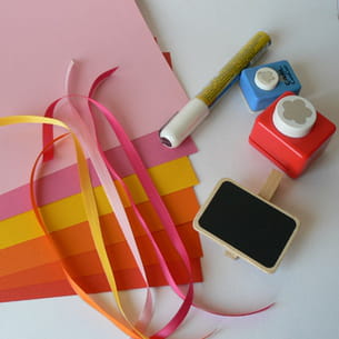 De feuilles de papier A4 en 130 g en couleurs : jaune primaire, hibiscus, rose clair, vieux rose et clémentine