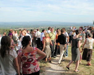 "Le cocktail et le repas se sont déroulés au château du Barroux, château médiéval à 20 km de Cairanne, avec une vue imprenable sur le Mont Ventoux et les Dentelles de Montmirail. Le cocktail a eu lieu sur la terrasse du château, à l'extérieur. Le repas s'est quant à lui tenu dans la cours intérieure avec vue sur les étoiles. Magnifique."