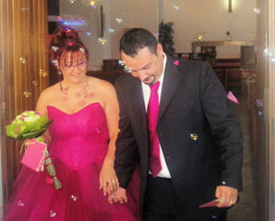 "J'avais découpé des tonnes de petits cœurs en papier de soie rose et acheté des petites pipettes à bulles de savon. C'est beaucoup plus sympa que du riz. Et vu le contexte actuel, il ne faut pas gâcher !"
