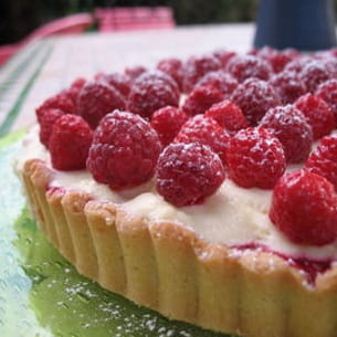 Tarte au chocolat blanc et aux framboises