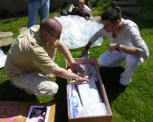 Le lendemain matin, nous nous sommes retrouvés avec nos amis pour enterrer, dans le jardin, le fameux "cercueil des mariés". Ce coffret (rempli, par leurs soins, de gadgets, de lettres, de babioles souvenirs), ne doit être déterré qu'à la naissance de notre premier enfant. Affaire à suivre...