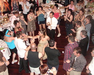 "Pour ouvrir le bal, nous avons demandé aux invités de se regrouper pour nous regarder danser sur la chanson de "Bagdad café". Et au bout d'une minute, ça a été la surprise ! Nous avions préparé une petite chorégraphie sur un enchaînement de musiques préparé avec le Dj (Beyoncé, Usher et Nadia). Tout le monde a été étonné, surtout de voir Florent danser... Les invités nous ont ensuite rejoints sur la piste pour toute la nuit.