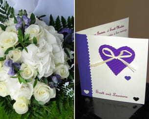 Ayant fait des études d'art, j'ai réalisé le faire-part, ma robe et celles des filles d'honneur ainsi que toute la déco. Nous avons aussi fait le buffet et le bar !