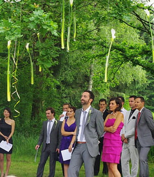 "Les compositions florales (bouquet de mariée, décorations de voiture, buffet, boutonnières, mais aussi soliflores dans les arbres et haie de fleurs sur bambou) sont composés par mon fleuriste mulhousien préféré."