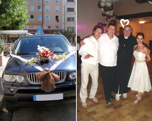 "Lors de la soirée, le meilleur ami de mon mari s'est déguisé en prêtre et a fait une "cérémonie religieuse" en sketch. Sachant que nous n'avions pas pu passer à l'église, mon mari étant divorcé, c'était d'autant plus chouette, un joli clin d'oeil...