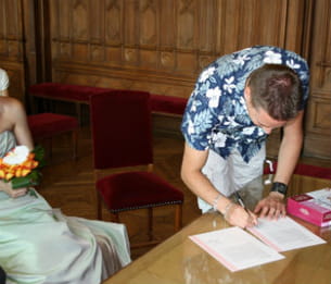 "Nous avons eu l'idée de pousser le style décontracté au maximum en imposant un dress code : short, chemise hawaïenne et chapeaux de paille aux invités (du baptême, s'entend). Nous avons donc choisi une salle avec un jardin où nous pourrions prendre le vin d'honneur et faire un barbecue".