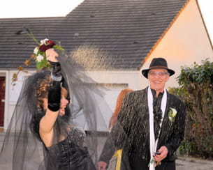 Les mariés quant à eux ont été fêtés à leur arrivée chez eux, non pas avec du riz comme c'est l'usage, mais avec des jets de graines biologiques pour oiseaux !