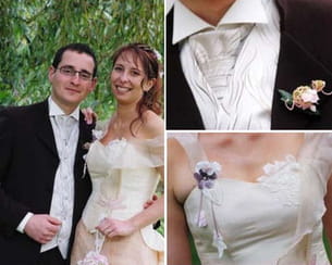 "Le thème de notre mariage reflétait nos deux professions, très créatives. De nos faire-part à notre décoration de table, notre mariage était inondé de petits clins d'œil à la fois chocolatés et fleuris. Pour les couleurs nous avons opté bien entendu pour du marron chocolat et du rose clair. Nous avons réalisé beaucoup de choses nous-mêmes, ce qui nous a permis d'avoir un mariage personnalisé."