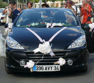 "Vivant dans le Sud de la France et se mariant au mois d'août, nous avions des chances pour que le temps soit clément. Aussi, nous avions décidé de prendre la voiture de mon mari (une 307 cc) pour le mariage. La décapotable, pour se marier, ça le fait !