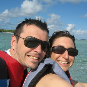 Les jeunes mariés ont pris le temps d'organiser leur lune de miel et sont partis plus de trois semaines sur les îles paradisiaques du Pacifique en mai 2011. A Tikehau, Huahine, Moorea, Maupiti et bien sûr Tahiti, Magalie et Cyril en ont pris plein les mirettes avec des paysages somptueux, se sont régalés avec une cuisine typique et ont même pu nager avec des raies et autres poissons étonnants. Le bonheur !