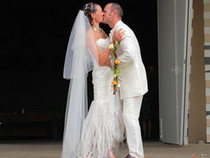Ces mariés ont vécu un véritable coup de foudre. Rencontrés en 2005, fiancés deux mois plus tard, ils se marient en 2008... en blanc tous les deux ! Un couple à croquer !