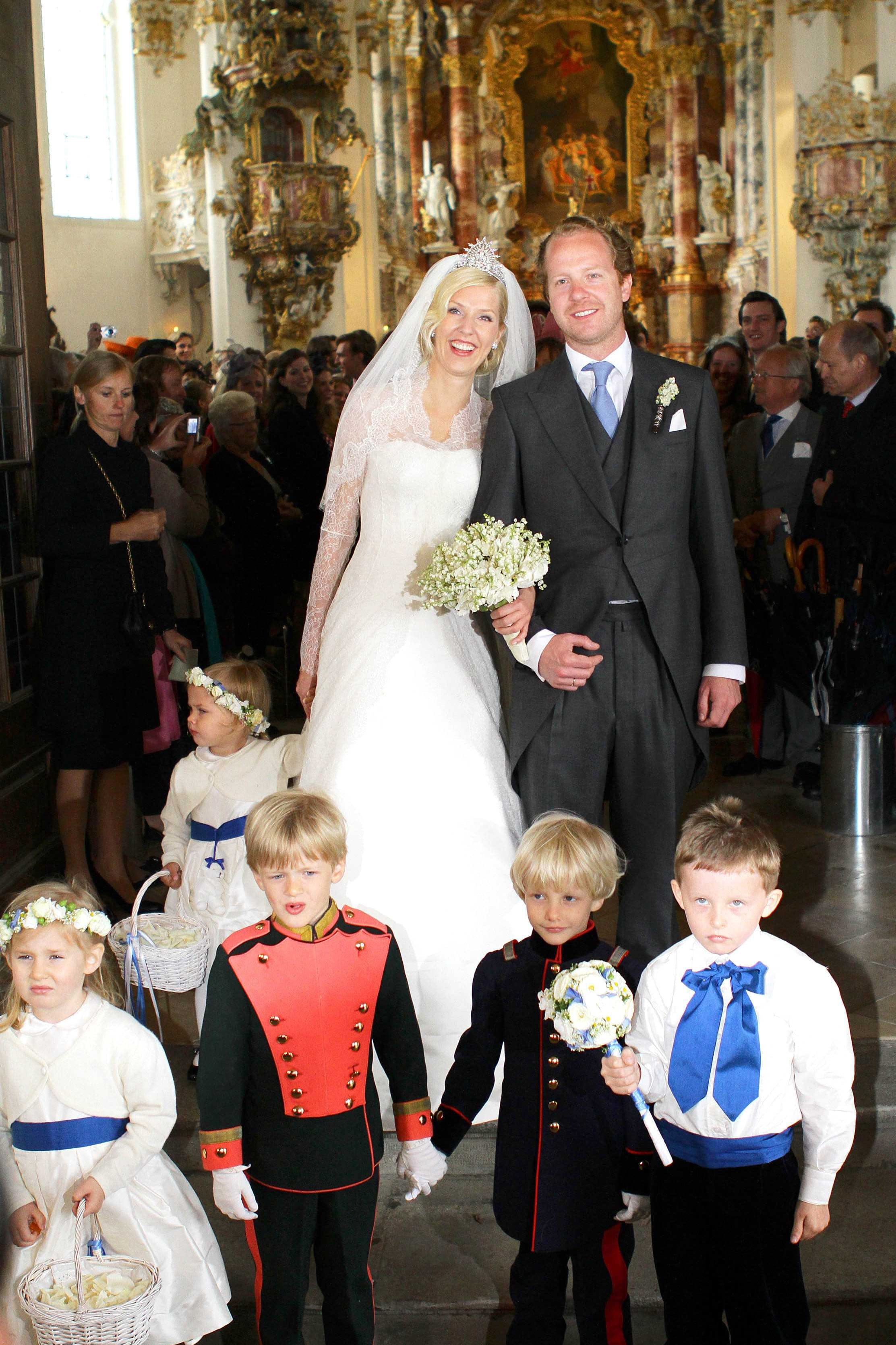 C'est à l'église de Steingarden que la princesse Felipa de Bavière a dit "Oui !" à son époux Christian Dienst. Sa robe de mariée recouverte de dentelle, est rehaussée par un diadème en diamants, qui appartenait à sa famille.