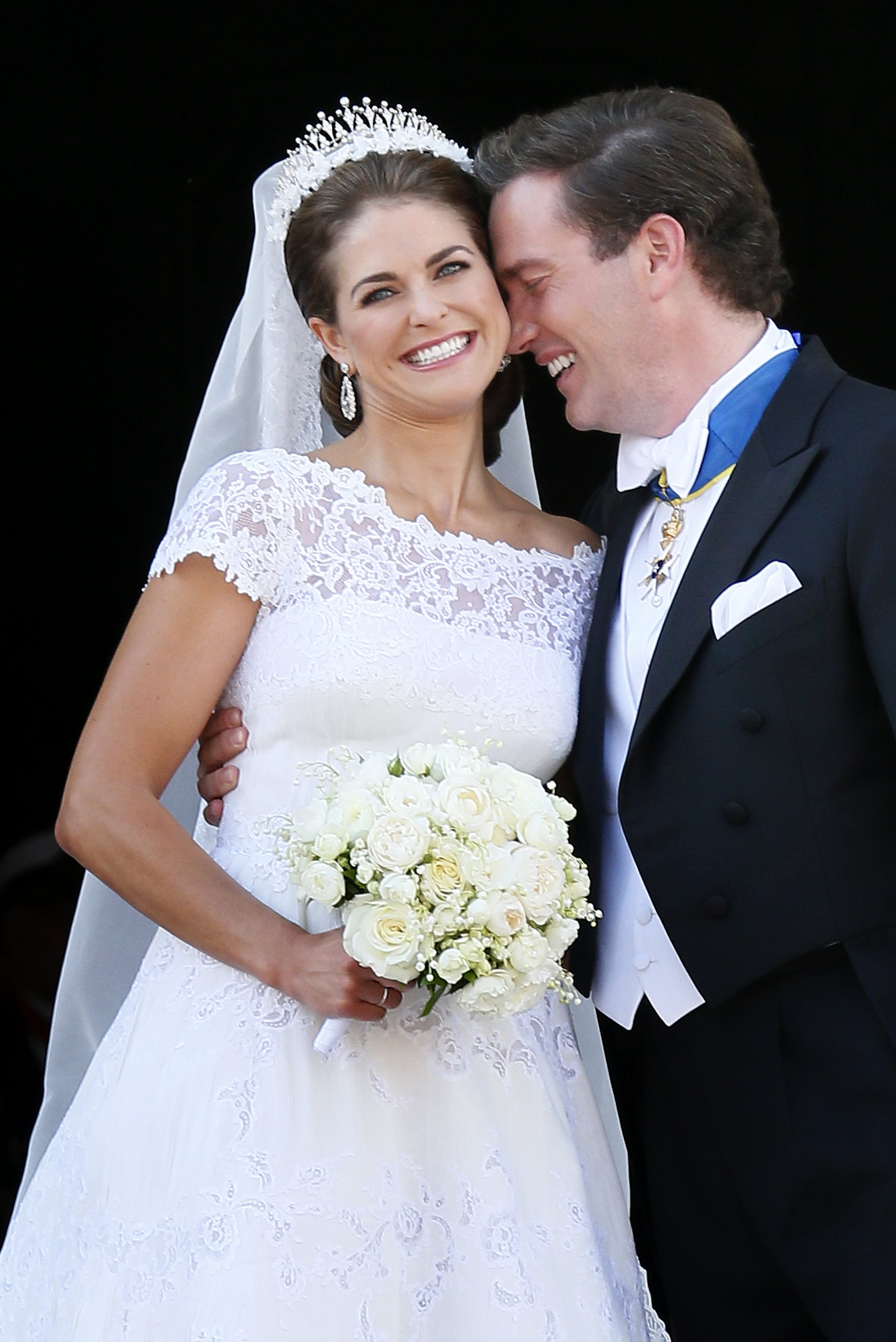 On craque pour la magnifique robe de mariée en organza de soie, et en dentelle de Chantilly, que portait la princesse Madeleine de Suède lors de son mariage avec Christopher O'Neill en juin 2013.