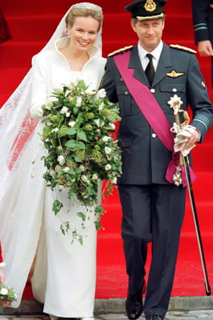 Philippe, le roi des Belges a épousé Mathilde en décembre 1999. Comme pour la princesse Claire, la robe de mariée a été réalisée par le créateur Edouard Vermeulen.