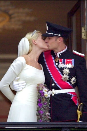 Lors de son mariage en 2001 avec le prince Haakon de Norvège, Mette-Marit Tjessem Høiby était vêtue d'une somptueuse robe de mariée à manches longues.