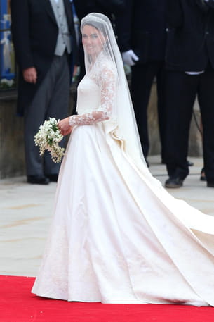 Lors de son mariage avec le prince William, qui avait lieu en avril 2011 à Westminster, Kate Middleton est apparue radieuse, dans sa robe de mariée créée par Sarah Burton, alors directrice artistique d'Alexander McQueen.