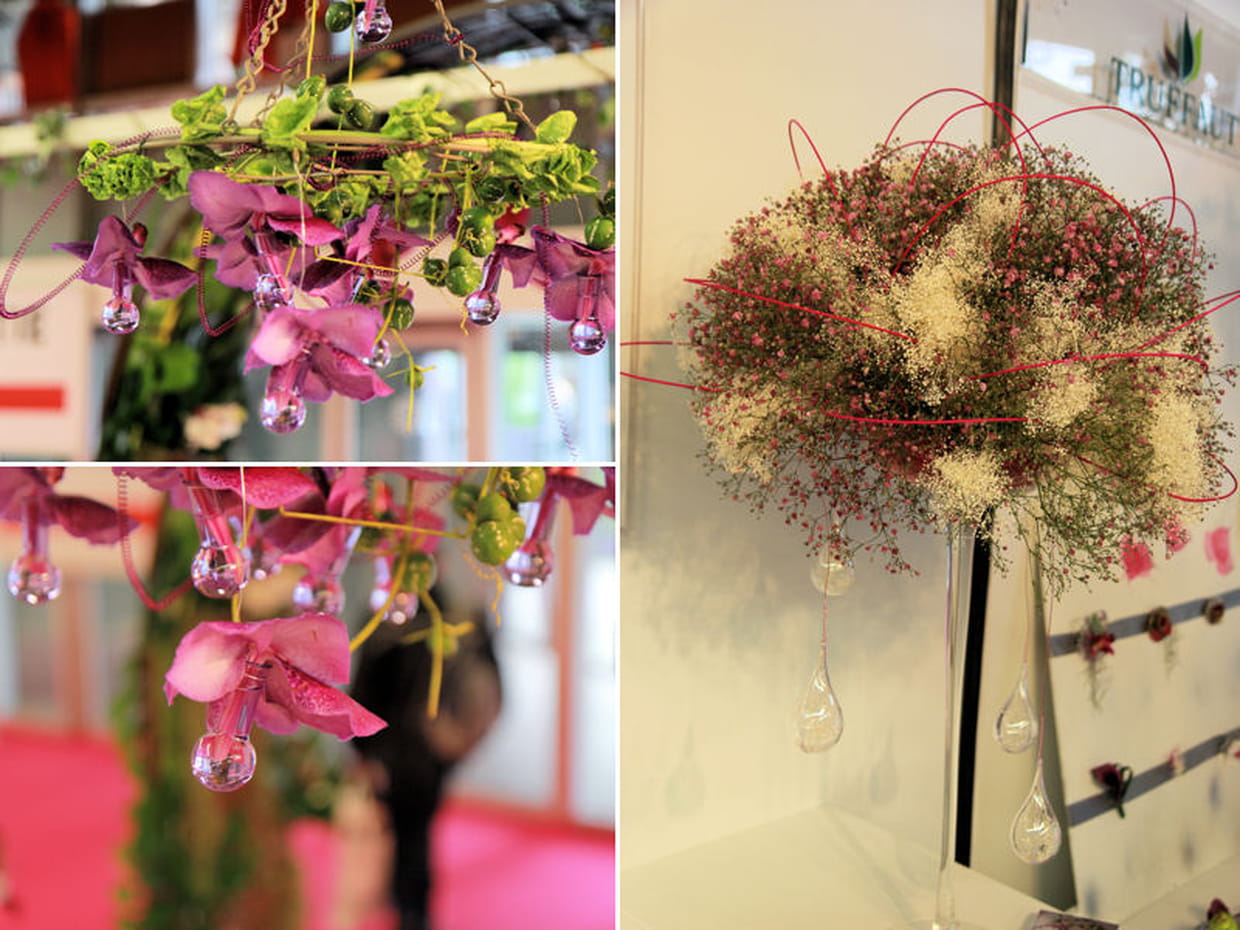 Pour la décoration florale de votre salle, Truffaut fait des merveilles. La preuve ici avec ces compositions originales et bucoliques qui habillent plafonds, murs ou tables.