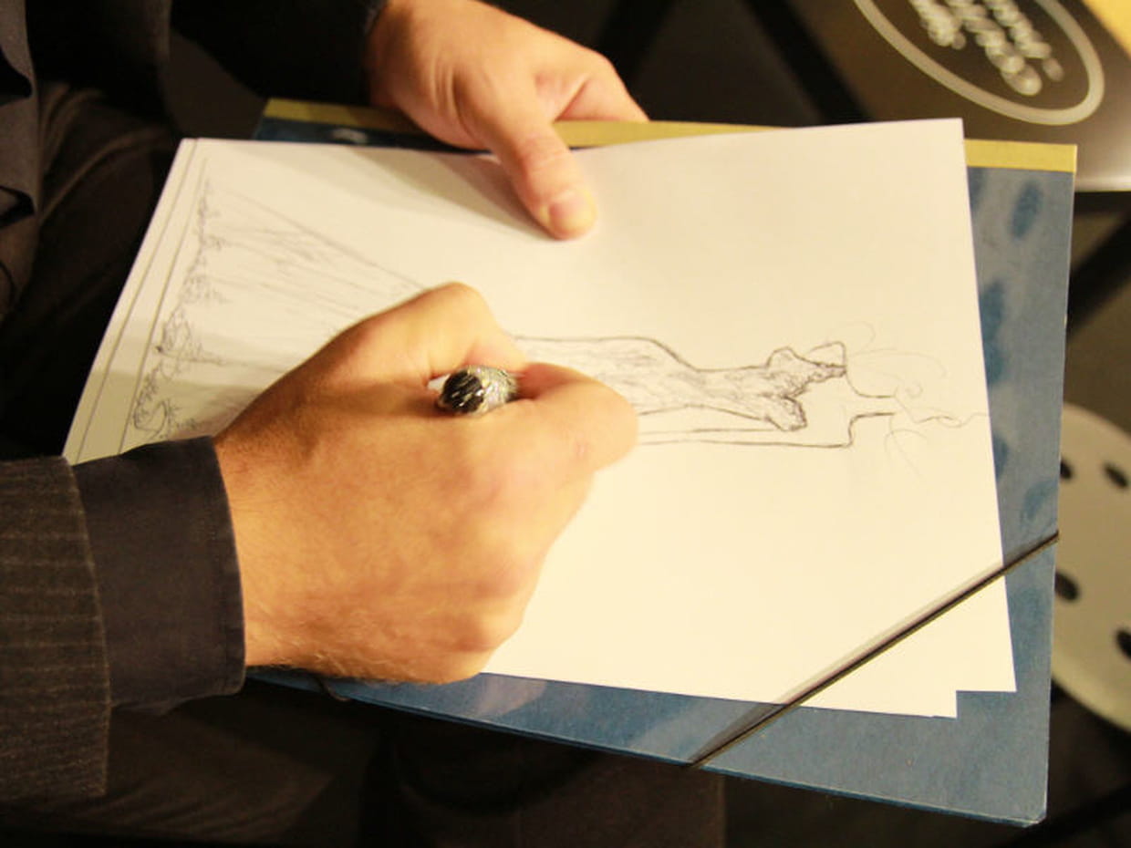 Quelques jeux de transparence encore, sur le bustier notamment. Puis Nabil Hayari parsème la robe de dentelle savamment posée ici et là.