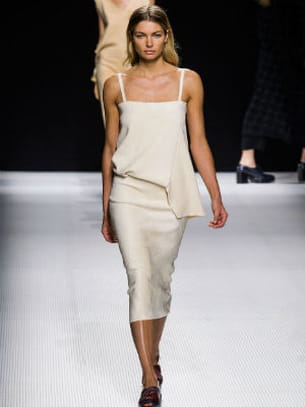 La longueur de la jupe Sonia Rykiel met en valeur les courbes de la femme et le top léger et fluide lui donne une toute autre dimension.