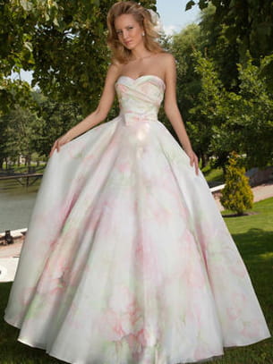 Cette robe au bustier coeur permet de porter de la couleur discrètement avec son imprimé floral pastel.