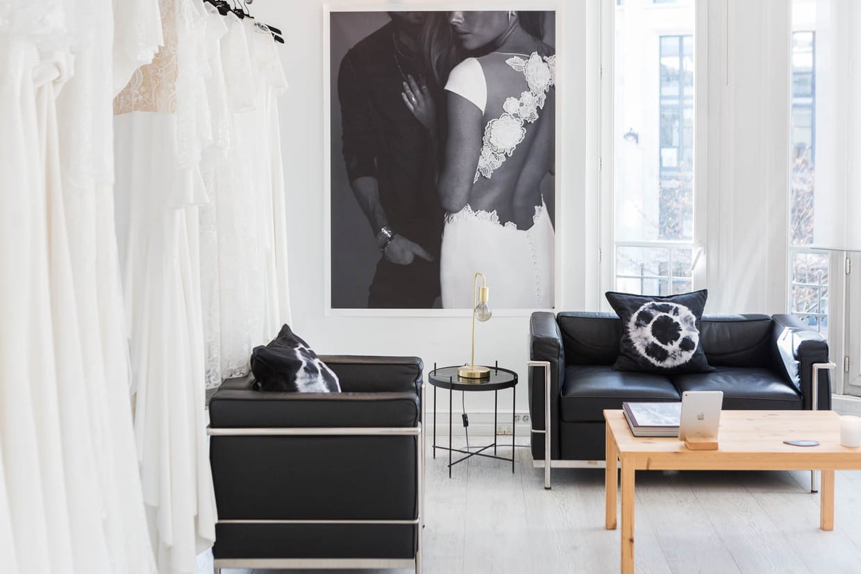 Marbre, cuir, laiton, bois… La créatrice a privilégié une décoration épurée et rock'n'roll pour son showroom.