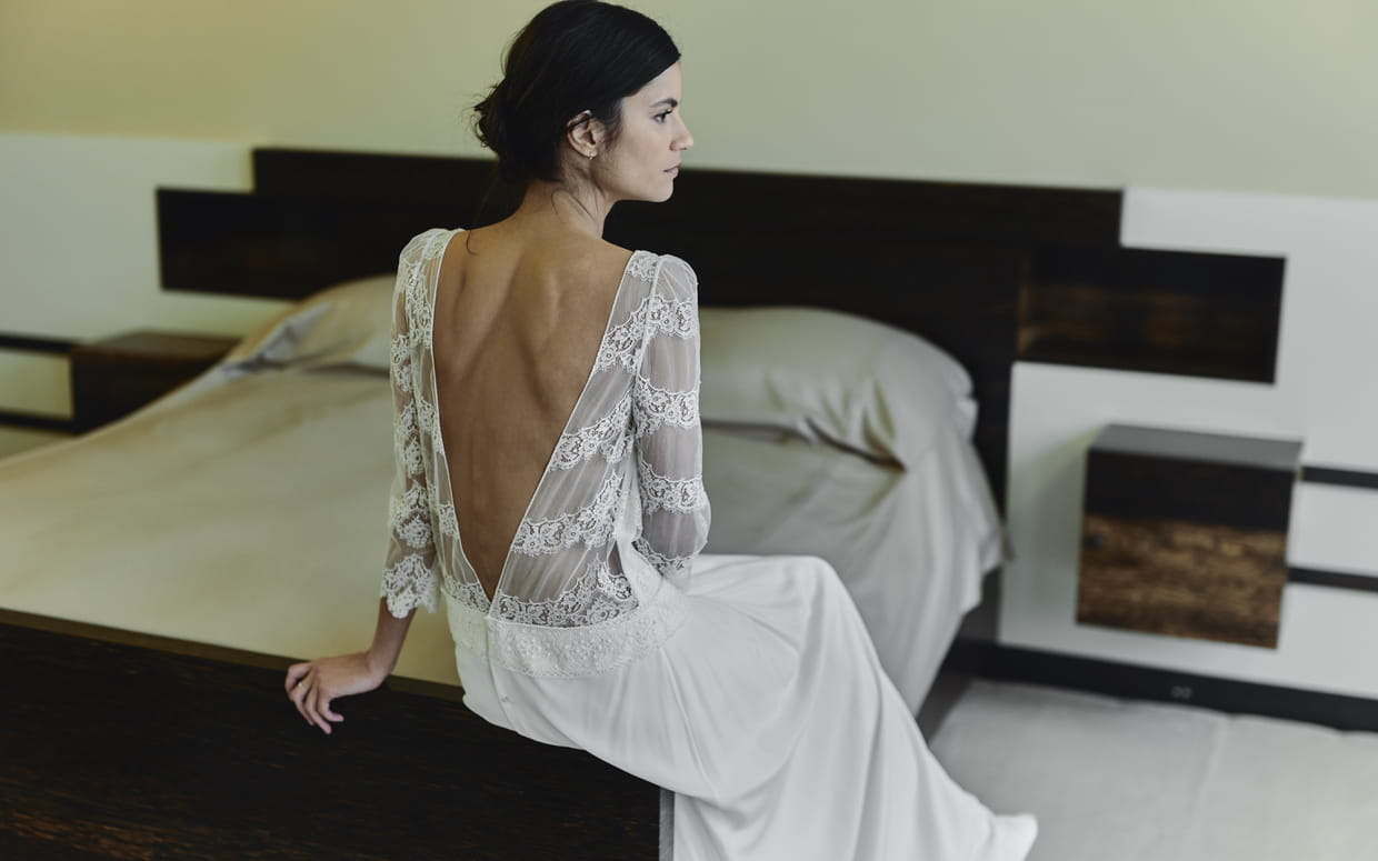 D'une élégance et d'une pureté incroyables, cette robe Gibson de la collection 2018 de Laure de Sagazan sublime les formes du corps. Son dos entièrement dénudé et la fluidité de la jupe iront à merveille aux mariées tendres et naturelles.
