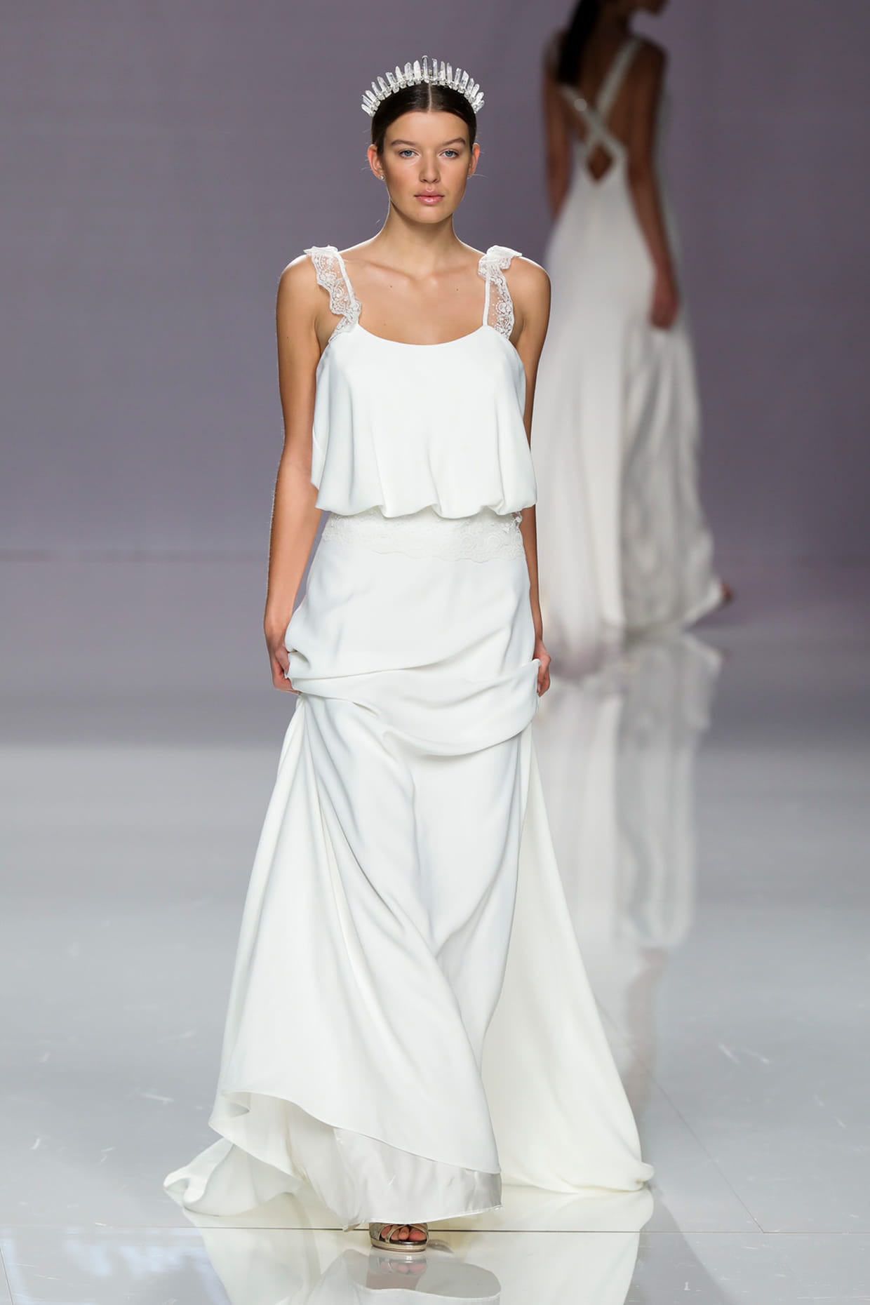 On aime particulièrement l'inspiration grecque de cette robe de mariée vaporeuse et magistrale.