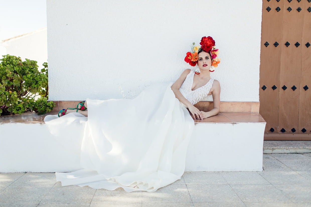 La robe Magdalena virevolte au vent grâce à sa soie légère et sa coupe aérienne. On adore le contraste entre le décolleté échancré et la jupe vaporeuse. Pour les futures mariées romantiques et bohèmes...
