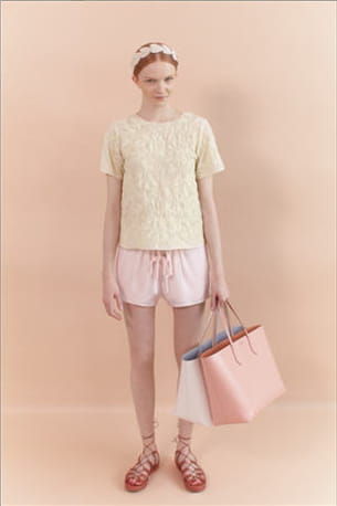 Chez Rochas, la tendance est aux tons poudrés. Pour un esprit très romantique, le haut esprit dentelle s'accorde à un short au coloris dragée. Les spartiates et le headband viennent parfaire cette panoplie aux accents antiques.