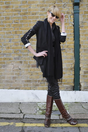 L'idée à lui piquer : les bottes cavalières marron contrastent avec le reste de la tenue et cassent la monotonie du noir