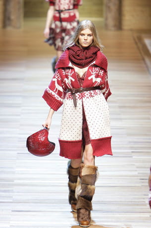 Hiver oblige, la mode se fait chaude et couvrante. Les créateurs s'amusent ainsi avec la maille en l'associant à des robes légères comme chez Diane Von Furstenberg, ou en la poussant à son paroxysme. C'est le cas de la marque D&G qui propose carrément un manteau en laine avec dessins de rennes en rouge et blanc.