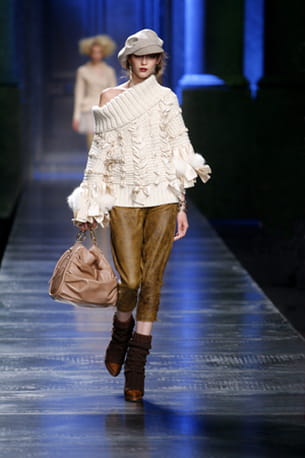 Pull en laine blanc cassé sur jodhpur en cuir vieilli tabac © DR