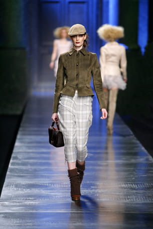 Veste en daim kaki sur jodhpur en laine taupe © DR