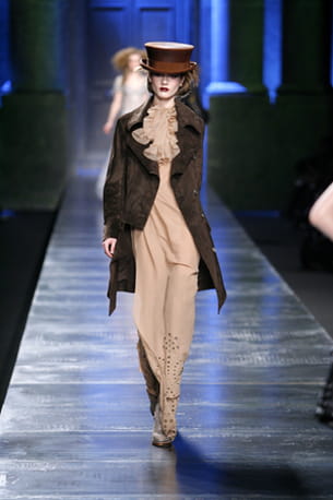 Manteau en daim marron et robe en soie vert d'eau © DR