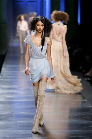 Robe en soie bleu pâle et gris pâle brodée © DR