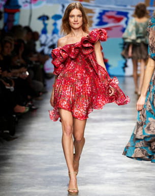 Pour cette nouvelle saison printemps-été, les couleurs vives et les imprimés fleuris constituent la garde-robe de Stella McCartney. Et cette ravissante robe à volants ne nous échappe pas ! Légère et féminine à souhait, elle sublime et apporte sa petite note de fraîcheur pour les beaux jours. Que du bonheur.