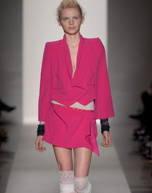 Le tailleur se délivre des codes imposés pour s'offrir une version revue et corrigée beaucoup plus rock avec Vanessa Bruno. Veste un peu lâche, jupe porte-feuille et coloris fuchsia s'imposent comme autant d'éléments originaux pour réveiller un classique.