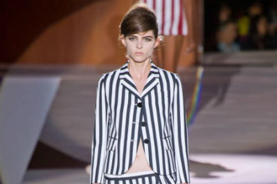 Les rayures semblent s'imposer comme un leit-motiv dans les collections printemps-été 2013. Après s'être imprimées sur le défilé Tommy Hilfiger, elles viennent structurer les modèles de la nouvelle collection de Marc Jacobs. Verticales ou horizontales, larges ou fines, colorées ou black & white, psychédéliques ou burtoniennes, les rayures sont partout. Elles s'étendent des vestes aux jupes en passant par les chaussures à bout pointu et les pochettes. Parfois, elles se croisent pour offrir un quadrillage ou s'effacent au profit de pois.