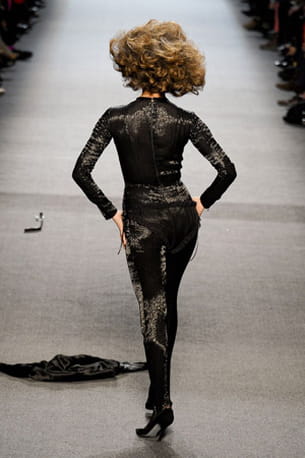 Et hop, l'humoriste s'en retourne en coulisses après un petit tour de piste. Un exercice d'effeuillage qui prouve que Valérie Lemercier n'a rien à envier à la jolie Dita Von Teese qui avait d'ailleurs, elle aussi, été invitée chez Jean Paul Gaultier. Clin d'oeil coquin : la belle porte une culotte affriolante sur sa combinaison.